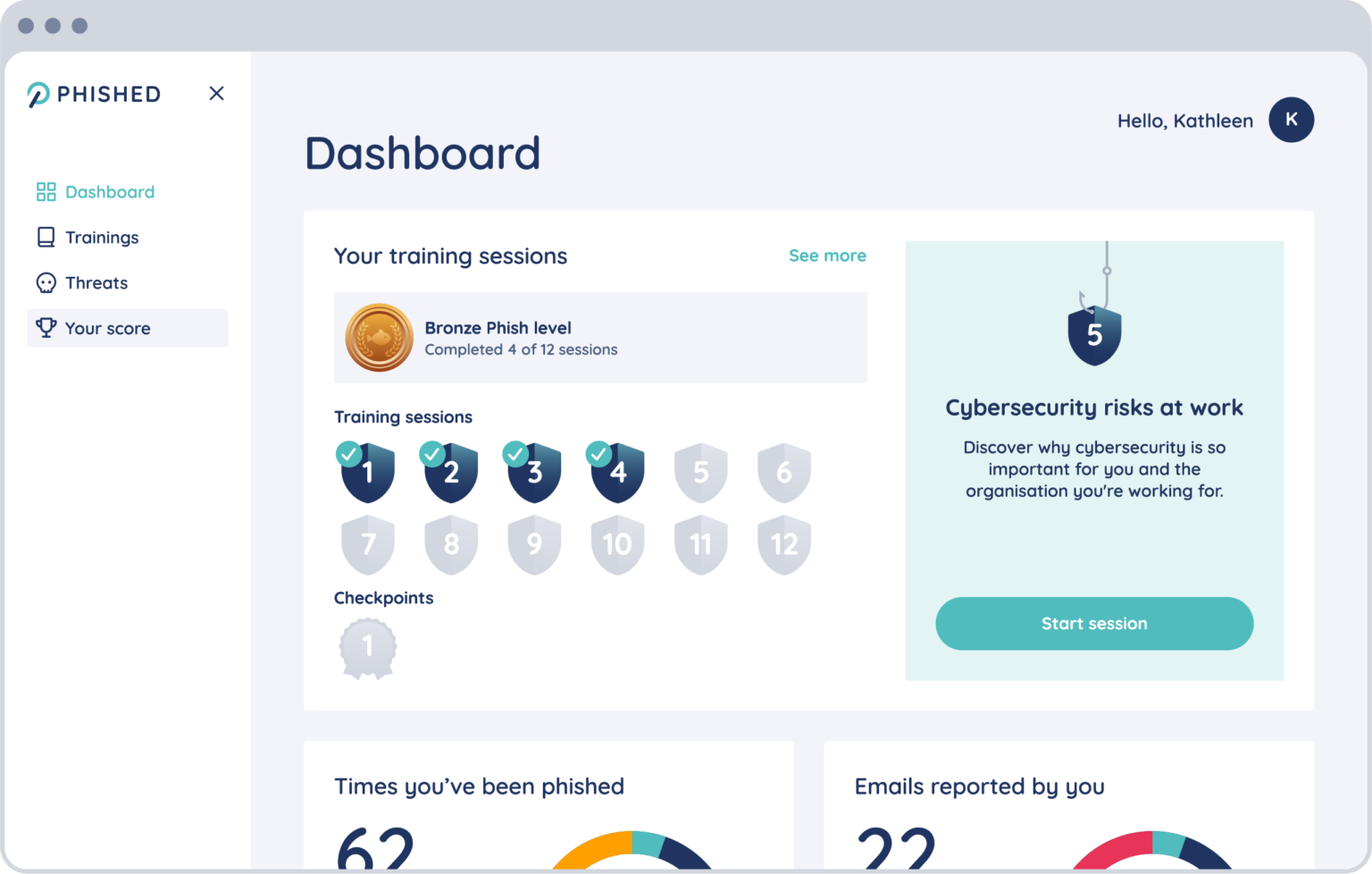 KAM Consultants werkt hiervoor samen met Phished, pionier in AI-driven Security Awareness Training. Het Phished-platform garandeert permanente gedragsverandering dankzij een holistische combinatie van gepersonaliseerde simulaties, security awareness trainingssessies, active reporting en threat intelligence.