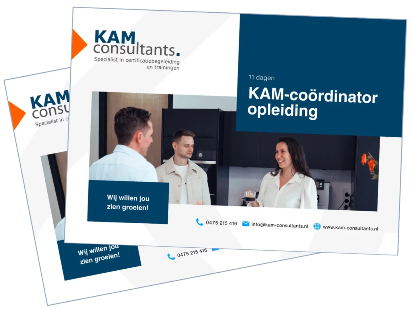 Onze trainers zijn experts met ervaring in het werkveld: zij leren jou alle kneepjes van het vak op het gebied van Kwaliteit, Arbo en Milieu. Je vindt ze op de Over Ons pagina van onze website, ze zijn vermomd als Certificatiespecialist. Naast het geven van trainingen en opleidingen, staan ze met hun voeten in de KAM-klei. We leggen de theorie op een praktische, toepasbare en toegankelijke manier uit, zodat je het geleerde direct in de praktijk kunt brengen. De opleiding volg je in een kleine groep, hierdoor hebben de trainers tijd en ruimte voor persoonlijke aandacht.